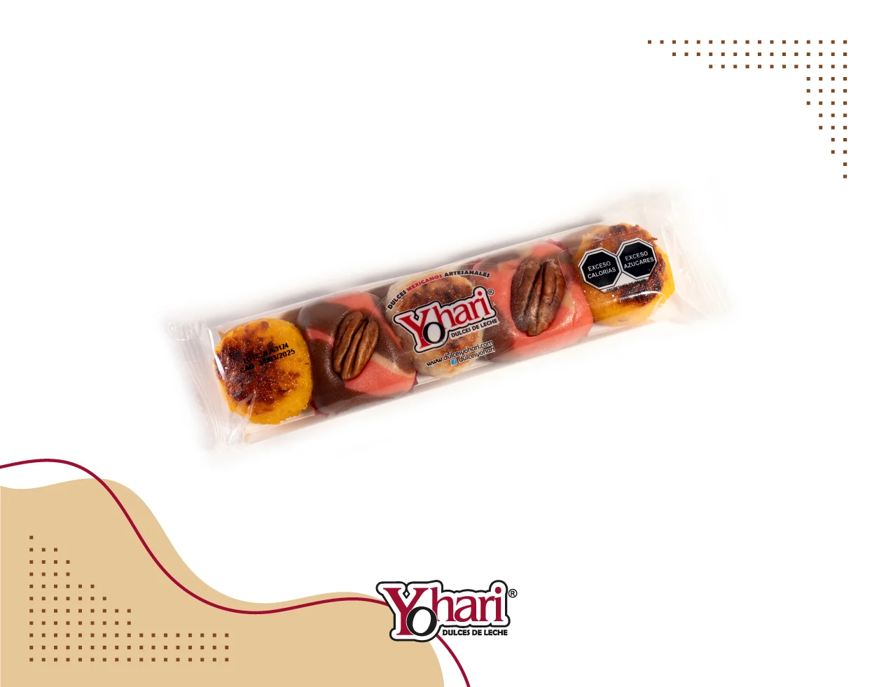 Cremoso coco a base de leche, armonizado con dulce de leche cacao natural y delicada nota de guayaba, con trozos de nuez delicadamente seleccionados.