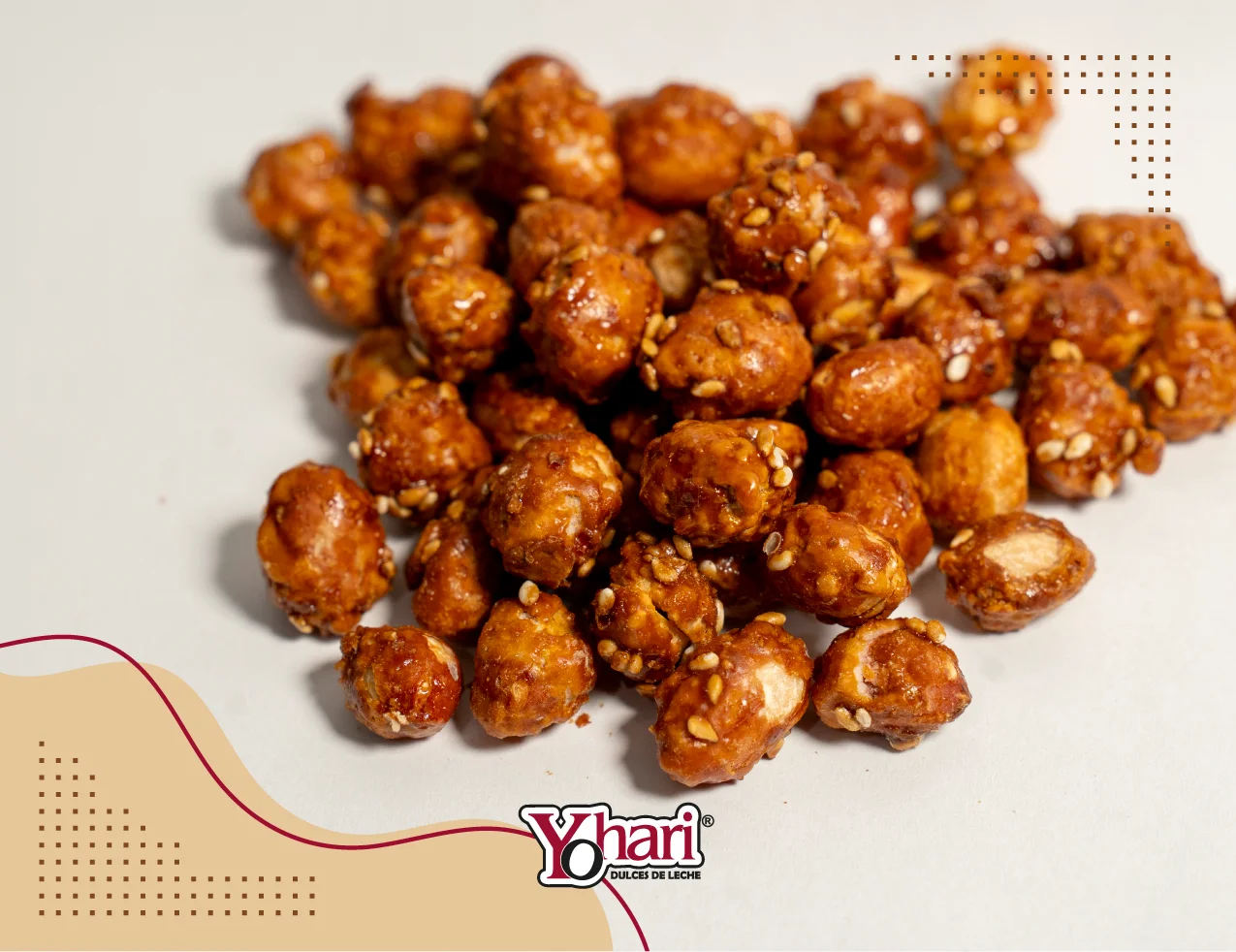 Cacahuate garapiñado con fina capa de azúcar de caña, toque de vainilla y ligero espolvoreado de ajonjolí.