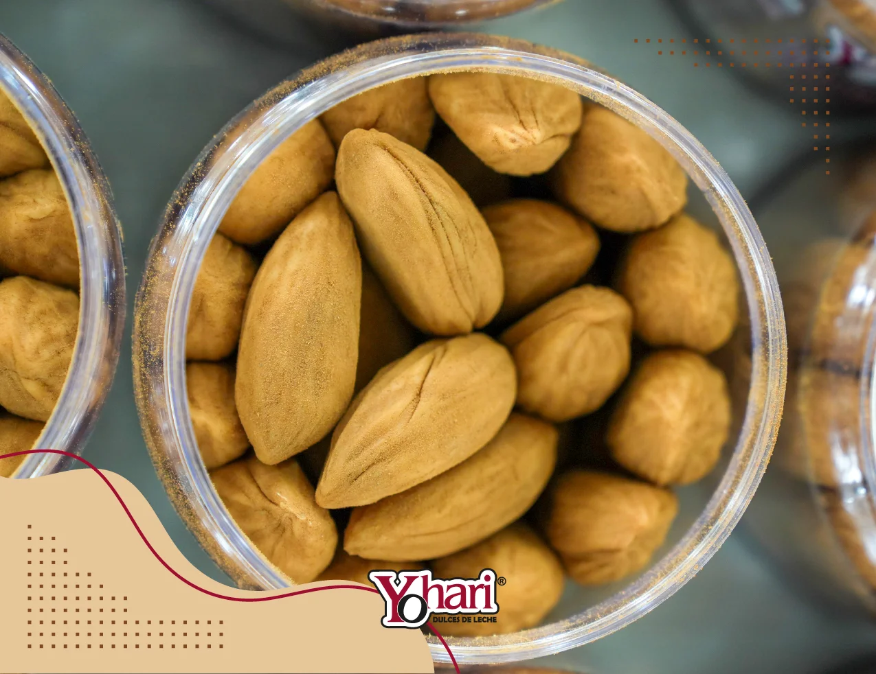 Dulce de leche quemada en forma de almendra espolvoreado con canela natural, de sabor intenso y acabado artesanal.